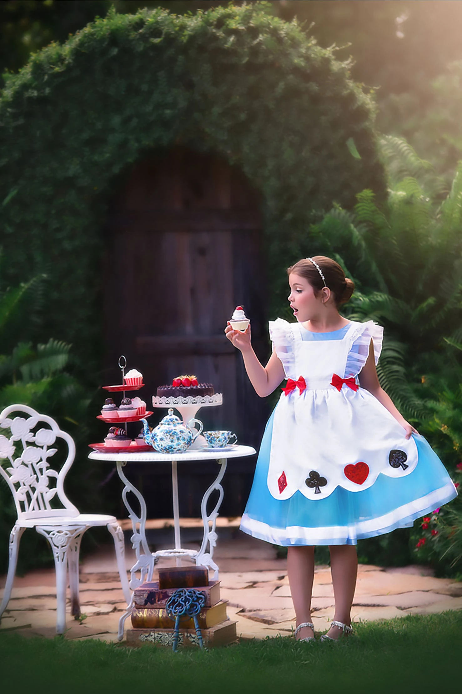 She will be the ace of spades and queen of your heart wearing this whimsical frock! Once of our cutest costume to date, she will have so much fun wearing this one! Pair it with our queen of hearts and white rabbit costume for the perfect group outing or photo shoot. Soft cotton, fully lined and back zip. Machine wash, hang dry.