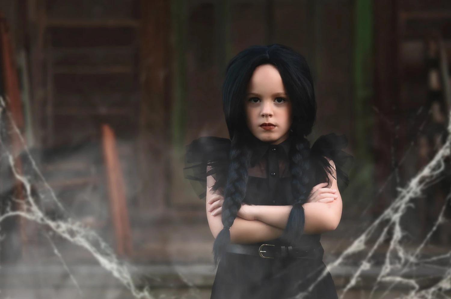 She’s creepy and she’s kooky, mysterious and spooky, all together ooky, is our dress, belt and wig set. You’re going to have fun with this one! Whether you’re a photographer or looking forward to halloween dress up, this set will not disappoint. 100% poly, fully lined. Machine wash, hang dry. Hand wash wig.